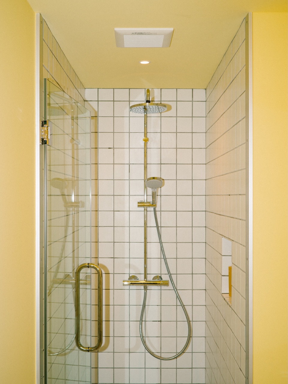 This maisonette-style room accommodates up to two guests. The shower room is on the first floor, and the bedroom is on the second. The exposed ceiling preserves the traditional charm of the machiya townhouse. The interior is minimally furnished, featuring tactile pieces such as a lounge chair designed by Jasper Morrison. When you open the window, you have a view of Ishiura Shrine, said to be the oldest in Kanazawa, right in front of you.