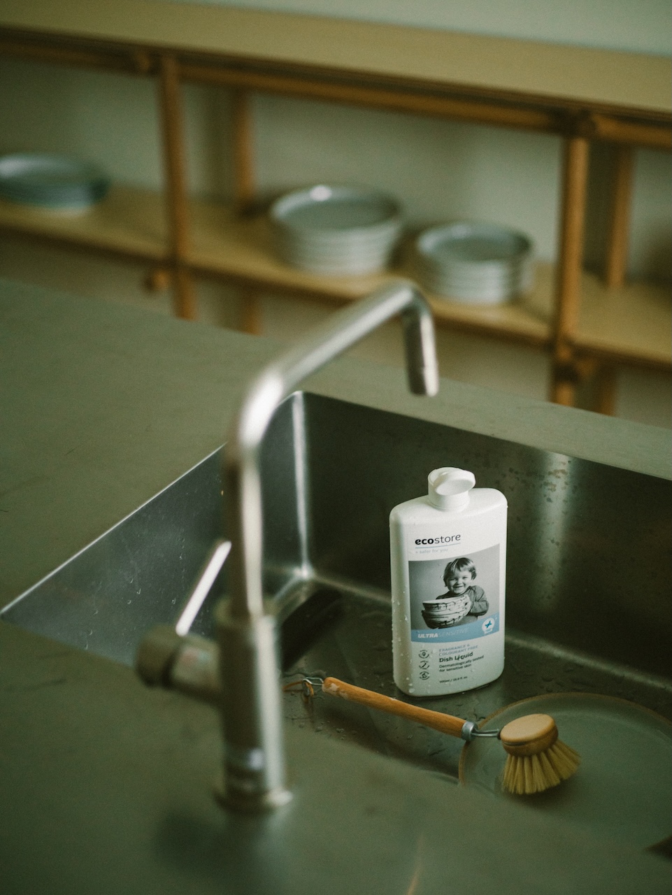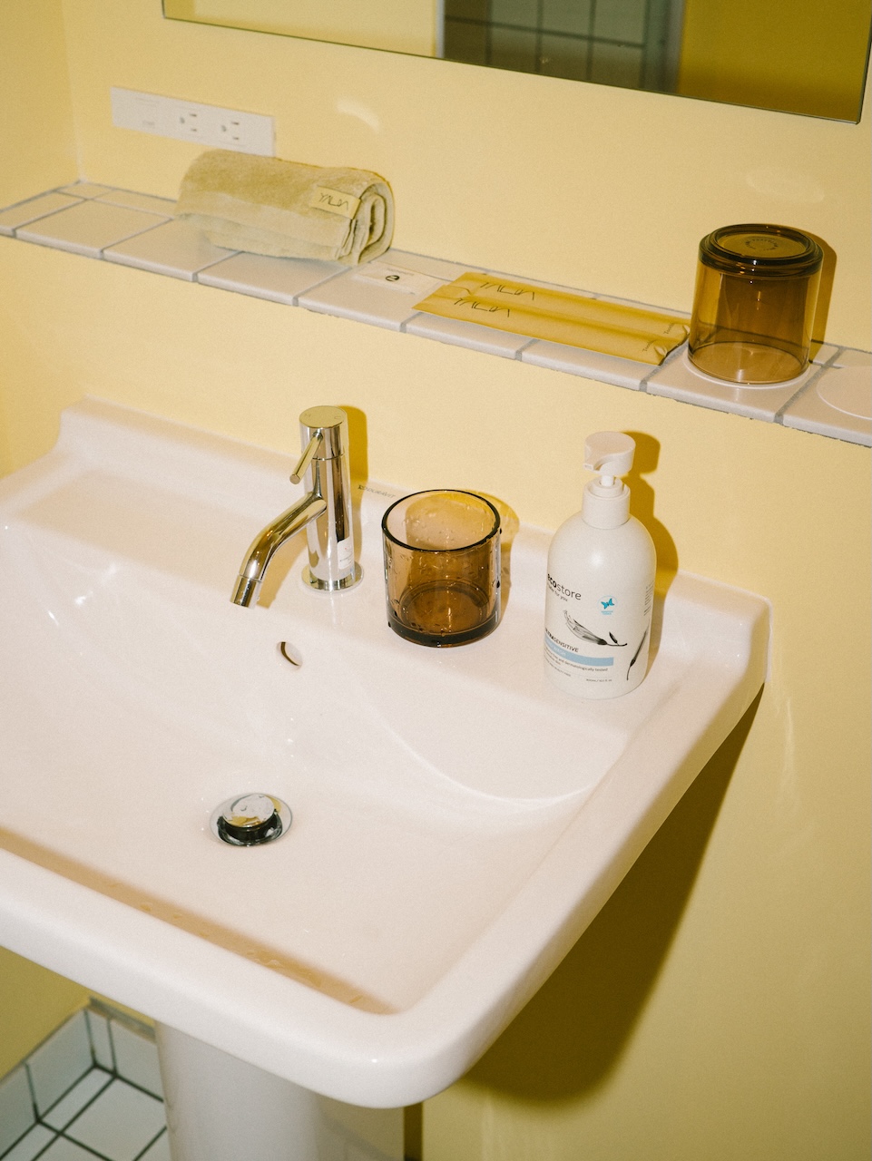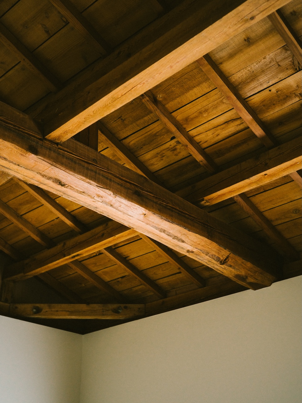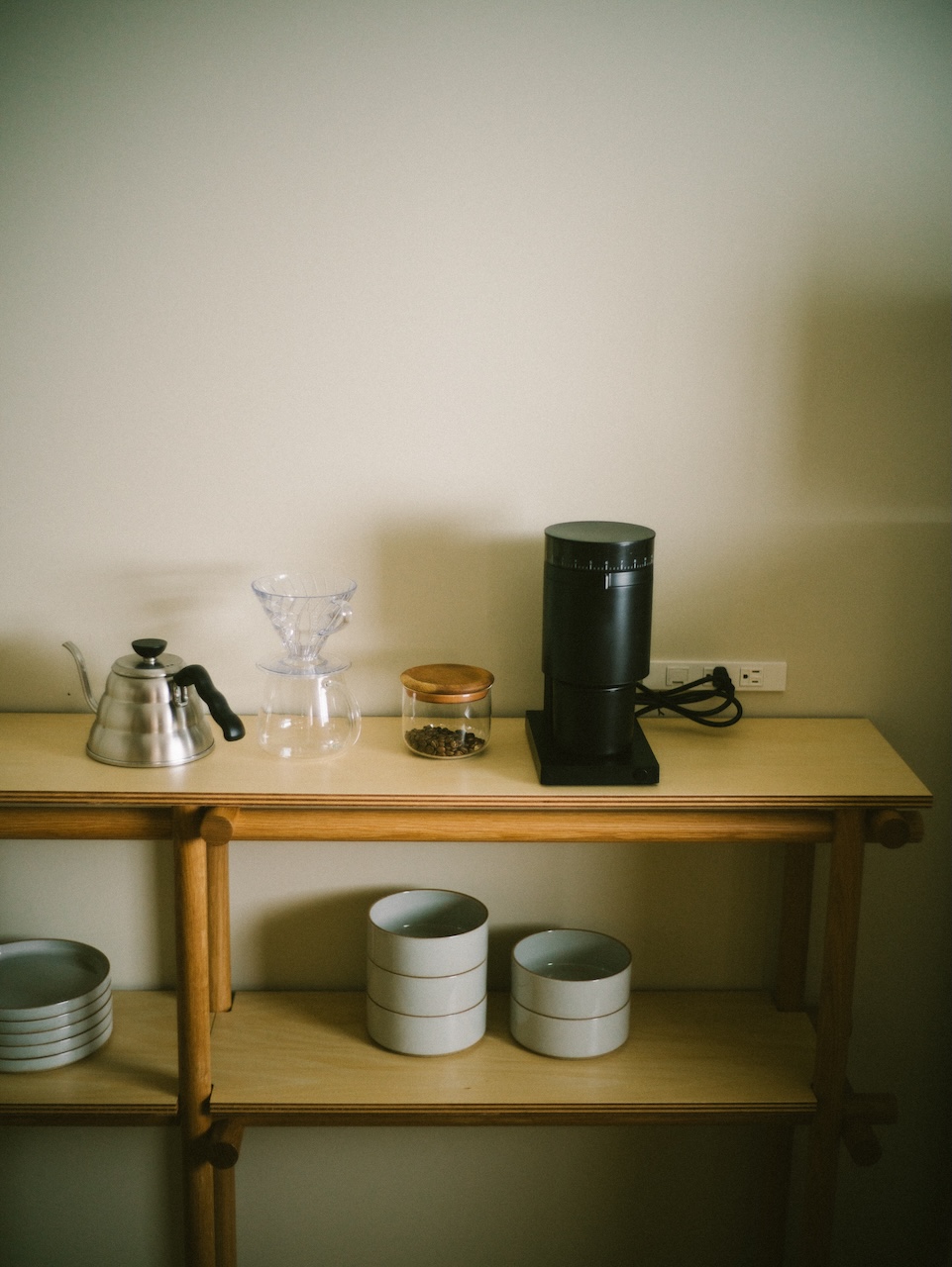 This maisonette-style room accommodates up to two guests. The shower room is on the first floor, and the bedroom is on the second. The exposed ceiling preserves the traditional charm of the machiya townhouse. The interior is minimally furnished, featuring tactile pieces such as a lounge chair designed by Jasper Morrison. When you open the window, you have a view of Ishiura Shrine, said to be the oldest in Kanazawa, right in front of you.