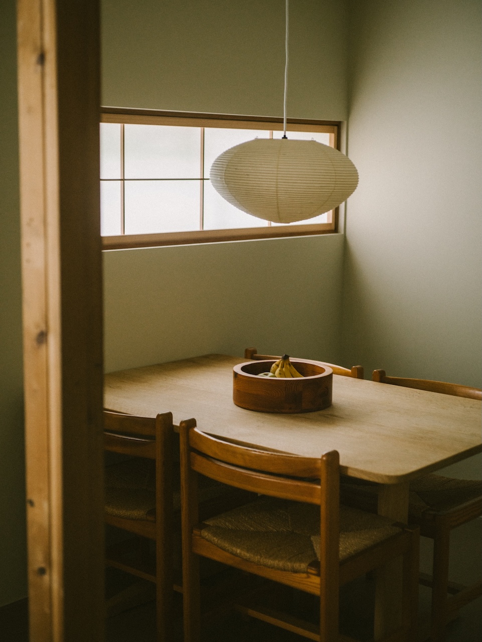 This maisonette-style apartment hotel accommodates up to five guests. The first floor includes a kitchen, a bathroom with a bathtub, and a washer-dryer, while the second floor has two bedrooms. The space is furnished with comfortable pieces, including a dining set by Børge Mogensen. With only the essentials placed, the uncluttered space is ideal for long stays or family use.